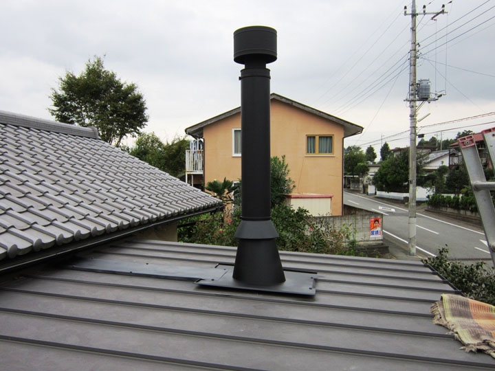 平屋の一戸建てに角トップ煙突群馬県吾妻郡 N 様