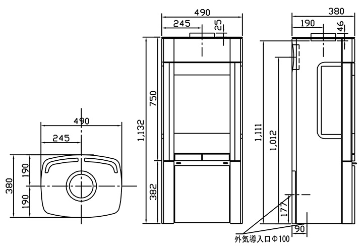 W 490 × D 380 × H 1132 mm