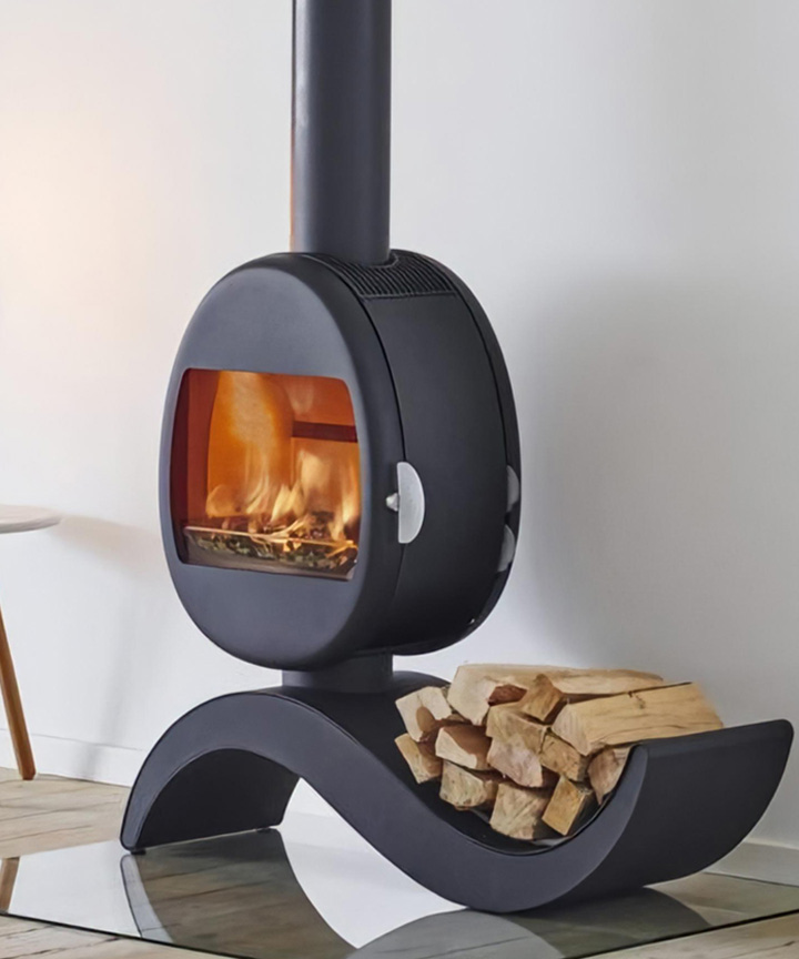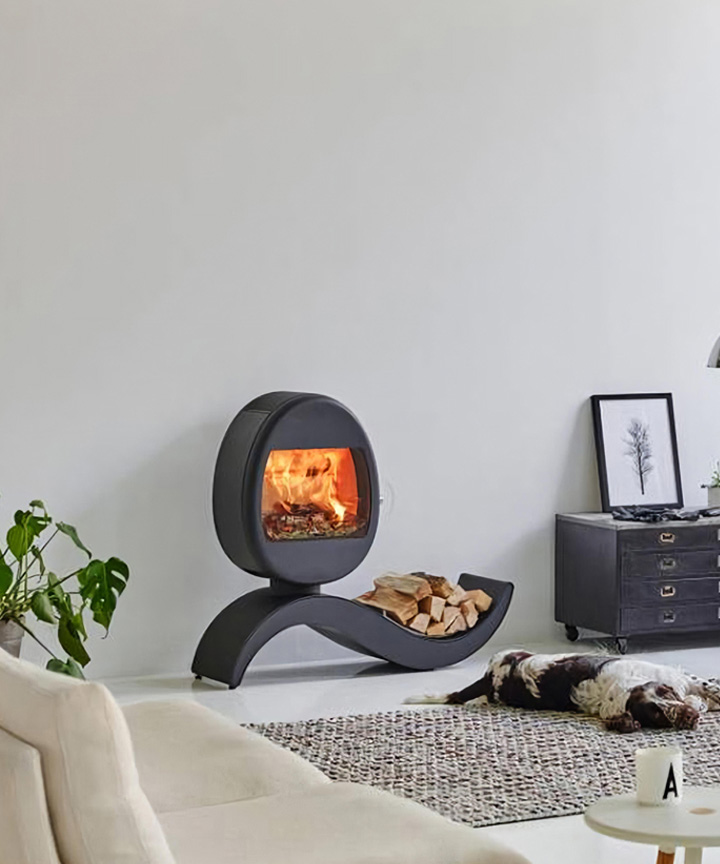 特徴的なアーチ状のベースは薪を置くストレージ。