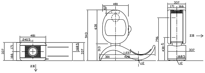 W 1037 × D 337 × H 943 mm