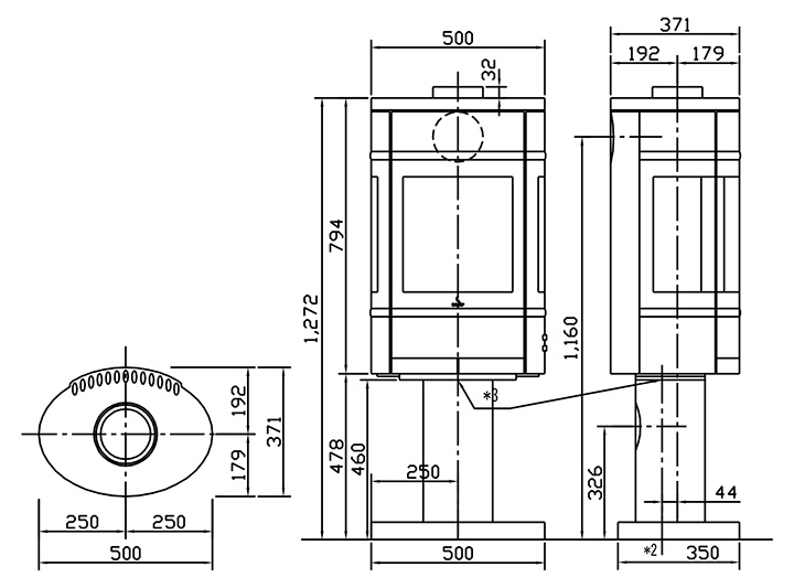 W 500 × D 371 × H 1272 mm